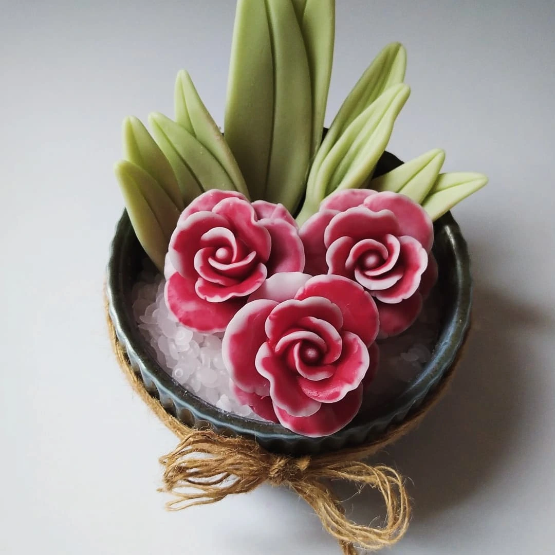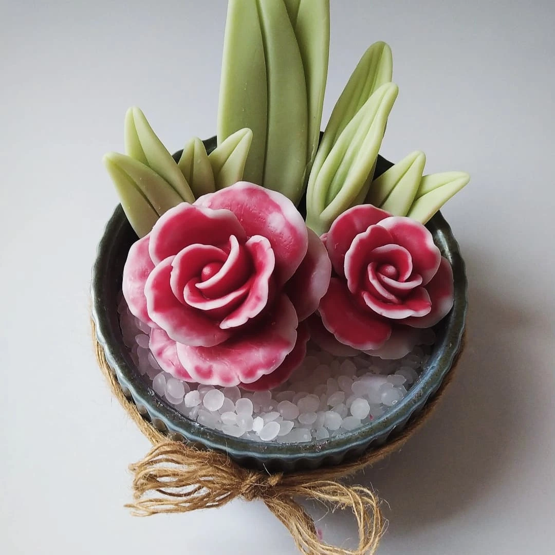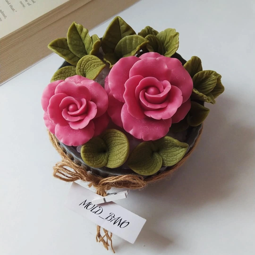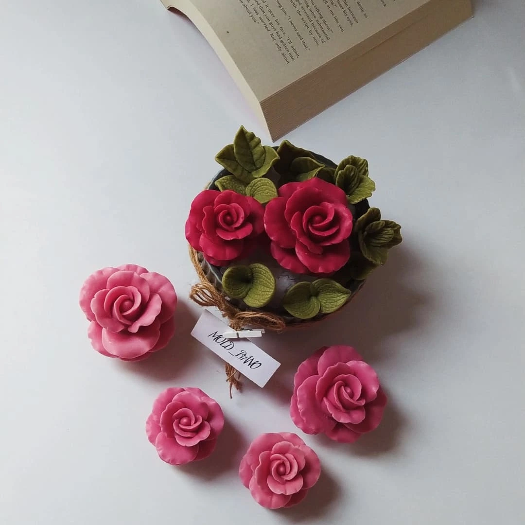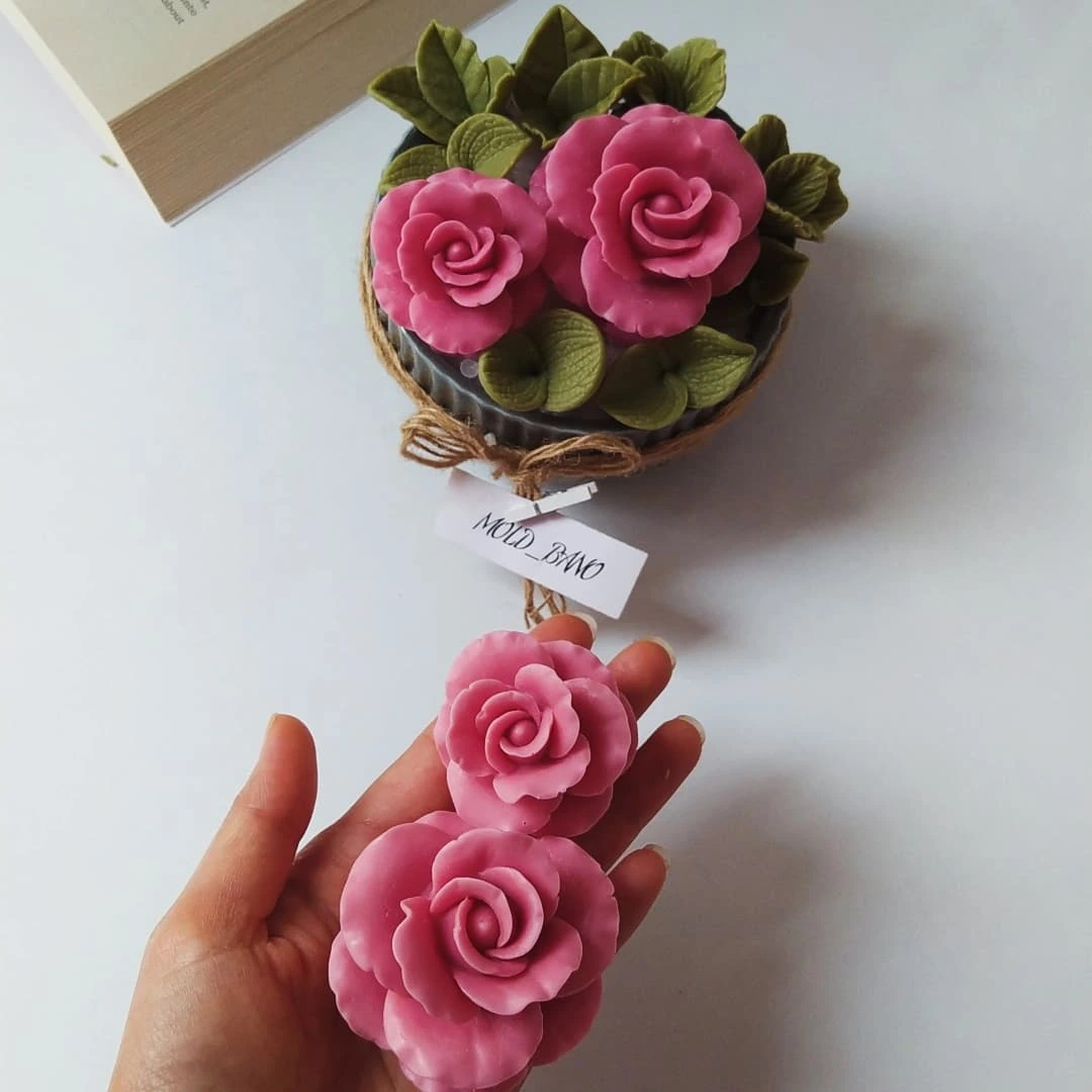 گل رز در دو سایز با قطر ۴ سانتیمتر و ارتفاع ۴.۵ سانتیمتر و سایز دیگر با قطر ۶.۵ سانتیمتر و ارتفاع ۵.۵ سانتیمتر.